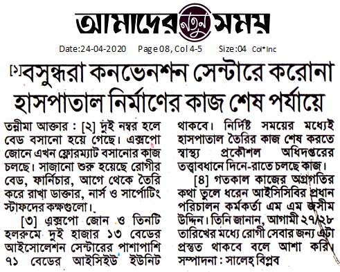 যথা সময়ে প্রস্তুত হচ্ছে আইসিসিবি অস্থায়ী করোনা হাসপাতাল